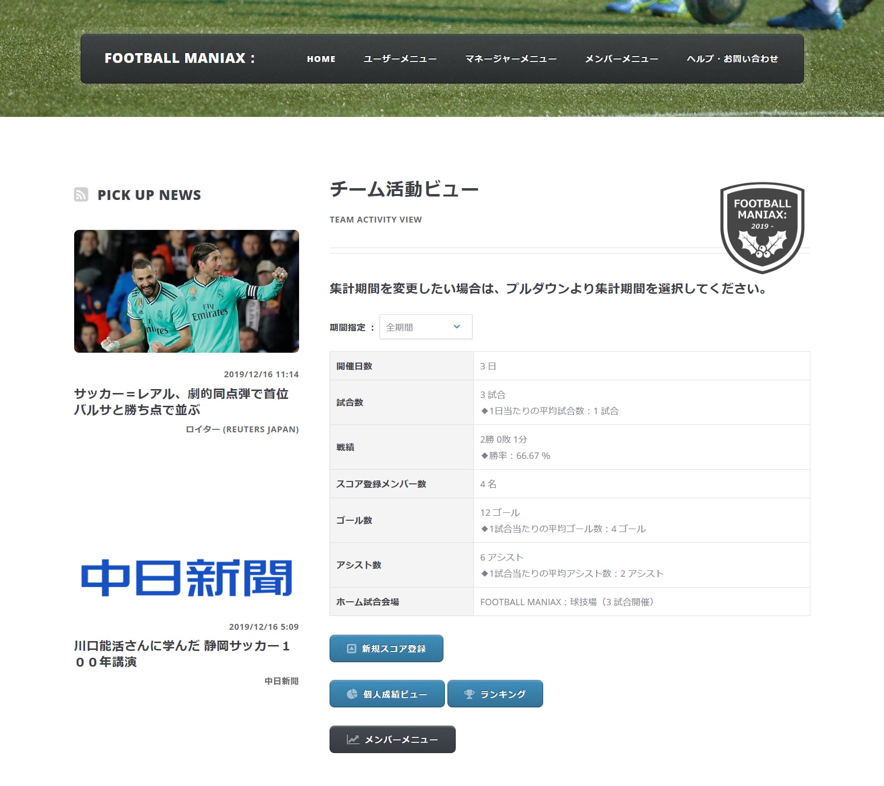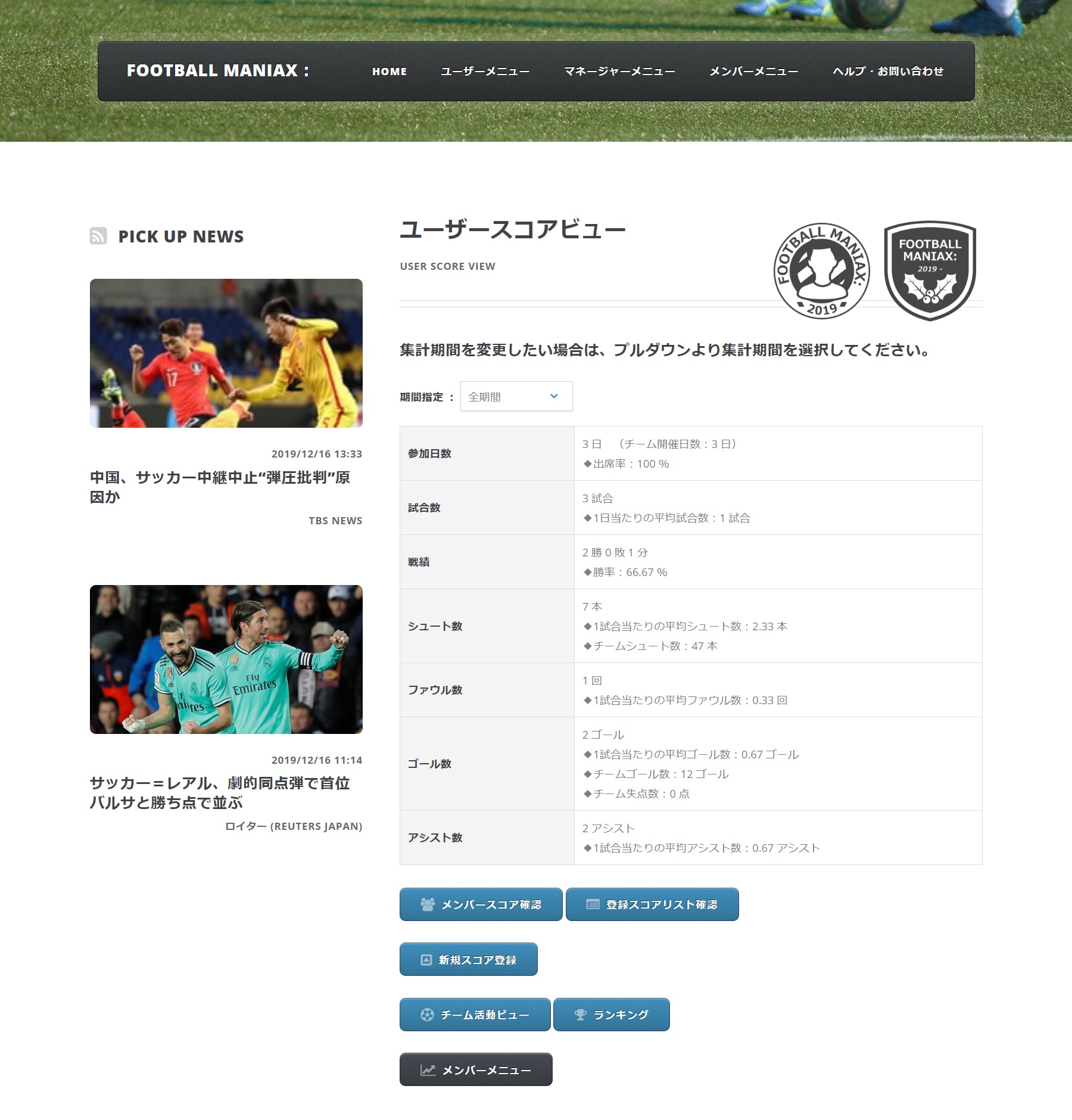集計期間を変更することで、一定期間内の各情報が閲覧可能です。